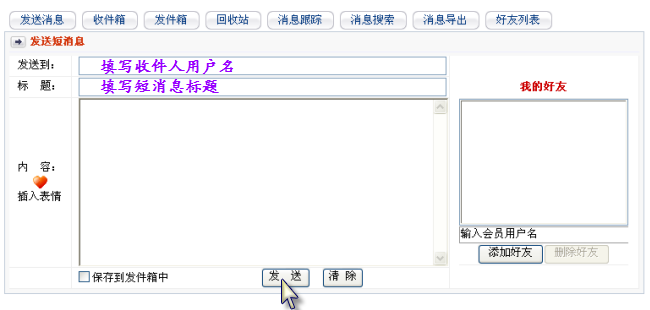 1. 发送短消息:“会员中心” >> “短消息” >> “发送消息”