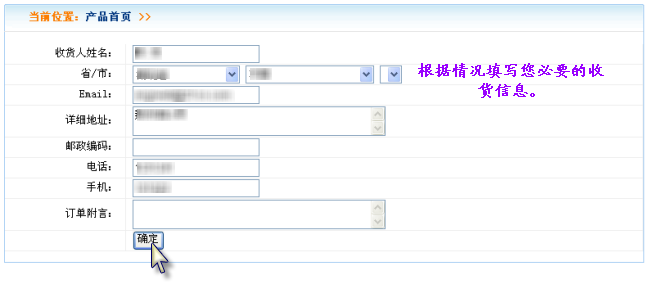 4. 填写您的收货信息,内容应真实,核对无误后点击“确定”