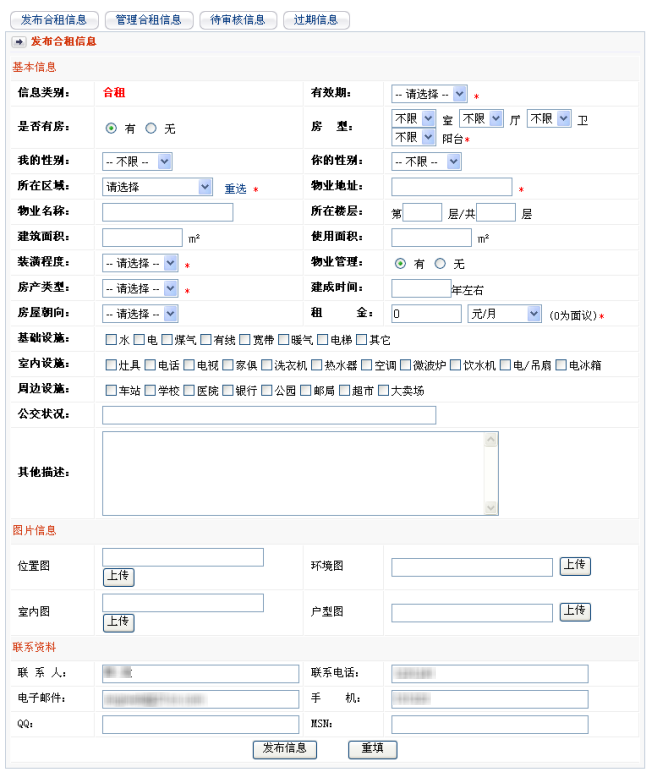 2. 此时进入会员中心,显示发布合租信息页面