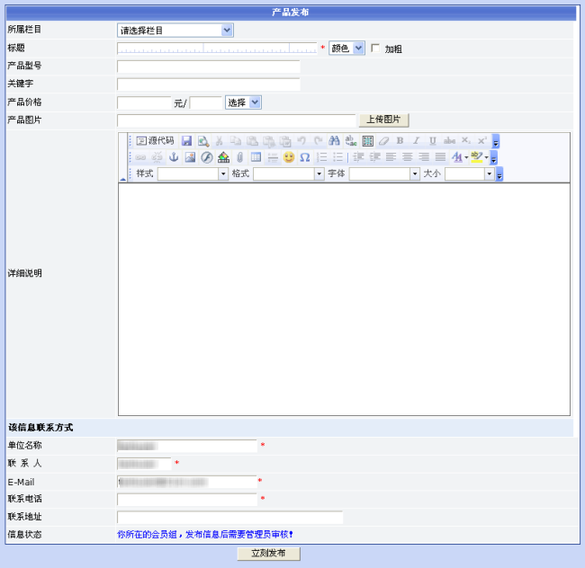 4. 点击“立刻发布”按钮发布信息。如果要求审核信息,则等待审核通过后方可发布信息。