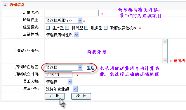 若没有注册注册ENGR网会员,请先注册ENGR网会员,然后按以下步骤注册店铺:
