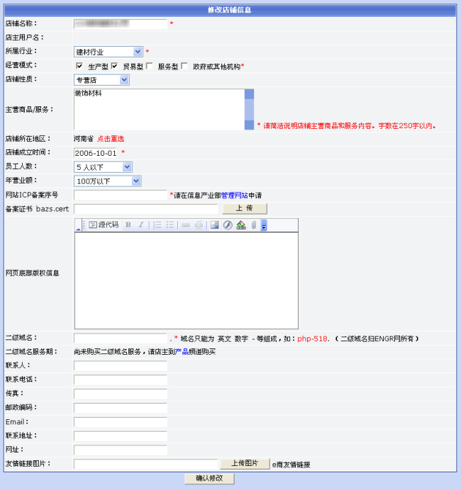 2. 在店铺管理后台的‘基本信息’节,点击“更改店铺信息”链接