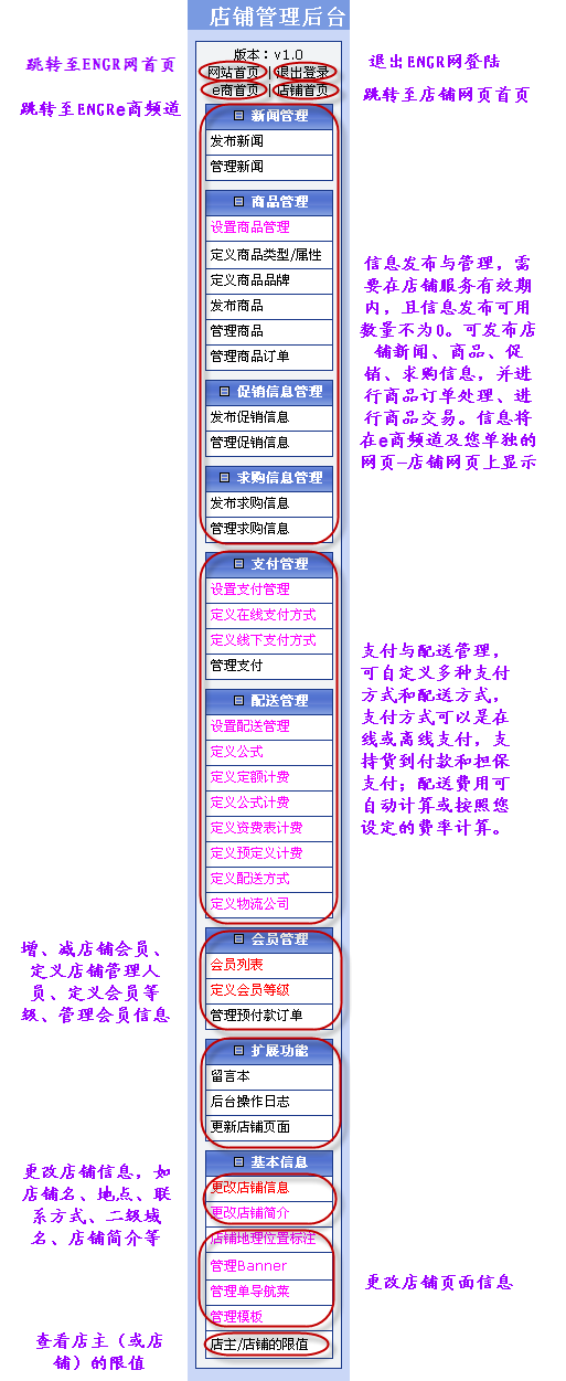 1. 要进入店铺管理后台,应先登陆ENGR网,进入e商频道,然后点击网页右上方的“店铺管理”按钮