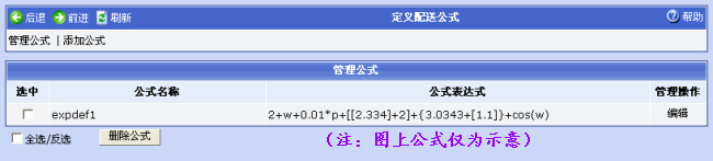 4.点击“定义公式”菜单链接,可自定义公式用于公式计费方法