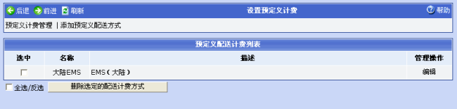9.点击“定义配送方式”菜单链接,可自定义配送方式。要使用该功能,务必已定义计费方法。配送方式将在买家购物页面中显示
