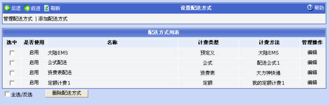 3. 点击“设置配送管理”菜单链接,可对配送管理进行设置