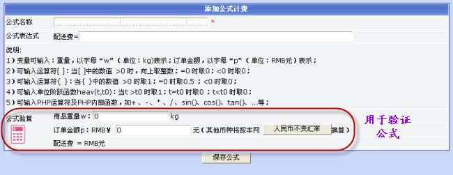 6.点击“定义公式计费”菜单链接,可自定义公式计费方法