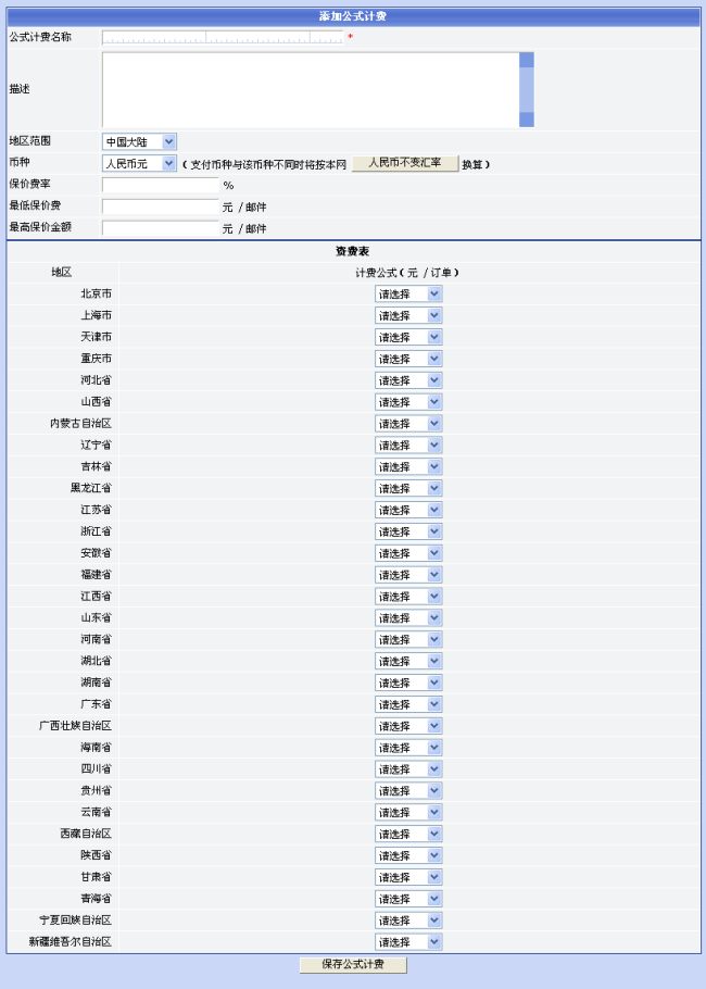 点击“添加公式计费”将显示添加公式计费页面