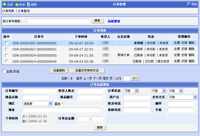 3. 点击“管理商品订单”菜单链接,可对商品订单进行管理并进行网上交易